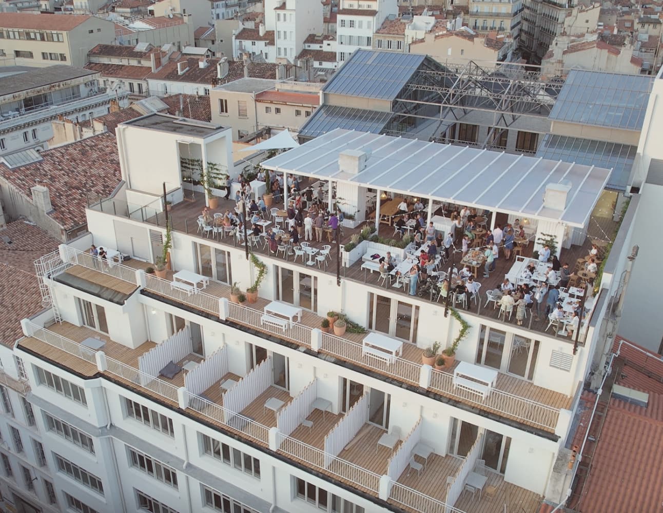 Perché au sommet du complexe cinématographique Artplexe, ce rooftop bistronomique situé 125 La Canebière domine majestueusement le 1er arrondissement marseillais face à l’Église des Réformés. Les Réformés offrent une perspective panoramique exceptionnelle sur les toits et monuments emblématiques de la cité phocéenne, créant un cadre spectaculaire pour vos événements. L’architecture contemporaine dialogue harmonieusement avec le patrimoine environnant, tandis que les espaces baignés de lumière méditerranéenne invitent à la convivialité. La cuisine bistronomique vivante célèbre les saisons avec créativité et respect du produit, accompagnée d’un service traiteur clé en main intégrant restauration, boissons et animations. L’accessibilité depuis la gare Saint-Charles en 13 minutes facilite les déplacements. Le quartier dévoile le Vieux-Port, le Panier historique et Notre-Dame de la Garde à proximité. L’établissement propose deux espaces totalisant 470 m², accueillant jusqu’à 270 personnes.